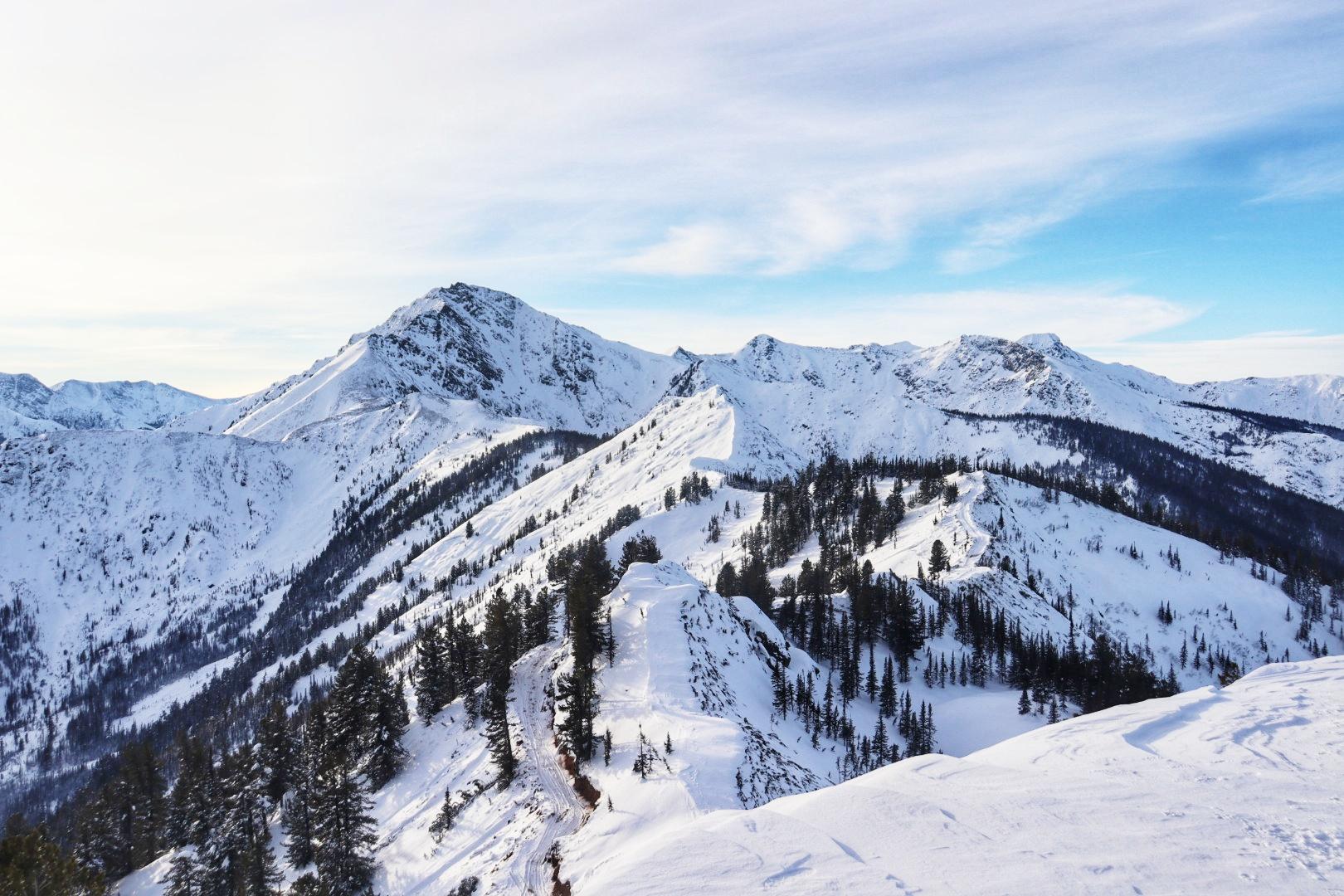 Панорама пика Порожистого и проложенной тропы, снятая с высоты 1620 метров.