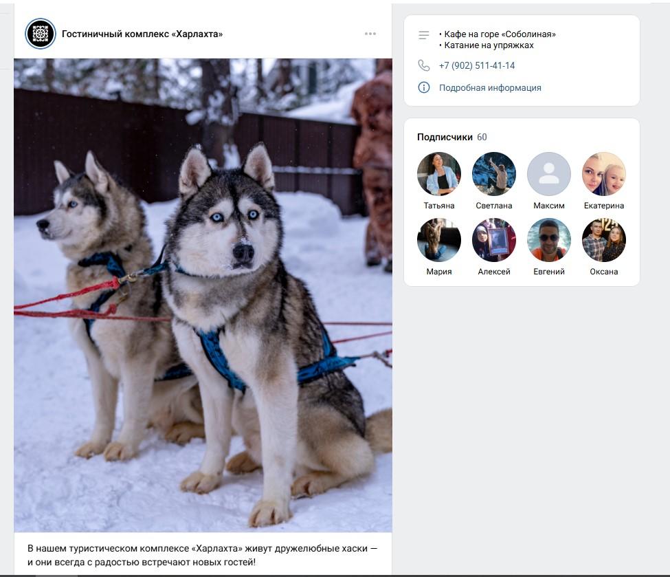 Гостиничный комплекс «Харлахта» организовал прокат снегоходов и поездки на собачьих упряжках.