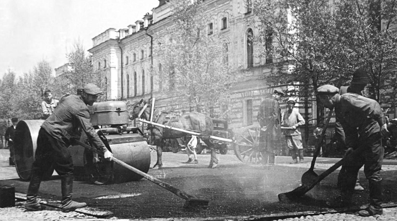 Масштабное асфальтирование центральных улиц стартовало в 1948 году. За два последующих года новое покрытие получили проспекты Карла Маркса, Ленина, Дзержинского, Красной Звезды (ныне Сухэ-Батора), участки возле завода имени Куйбышева, а также части улиц Горького, Чкалова и 5-й Красноармейской (Богдана Хмельницкого).
