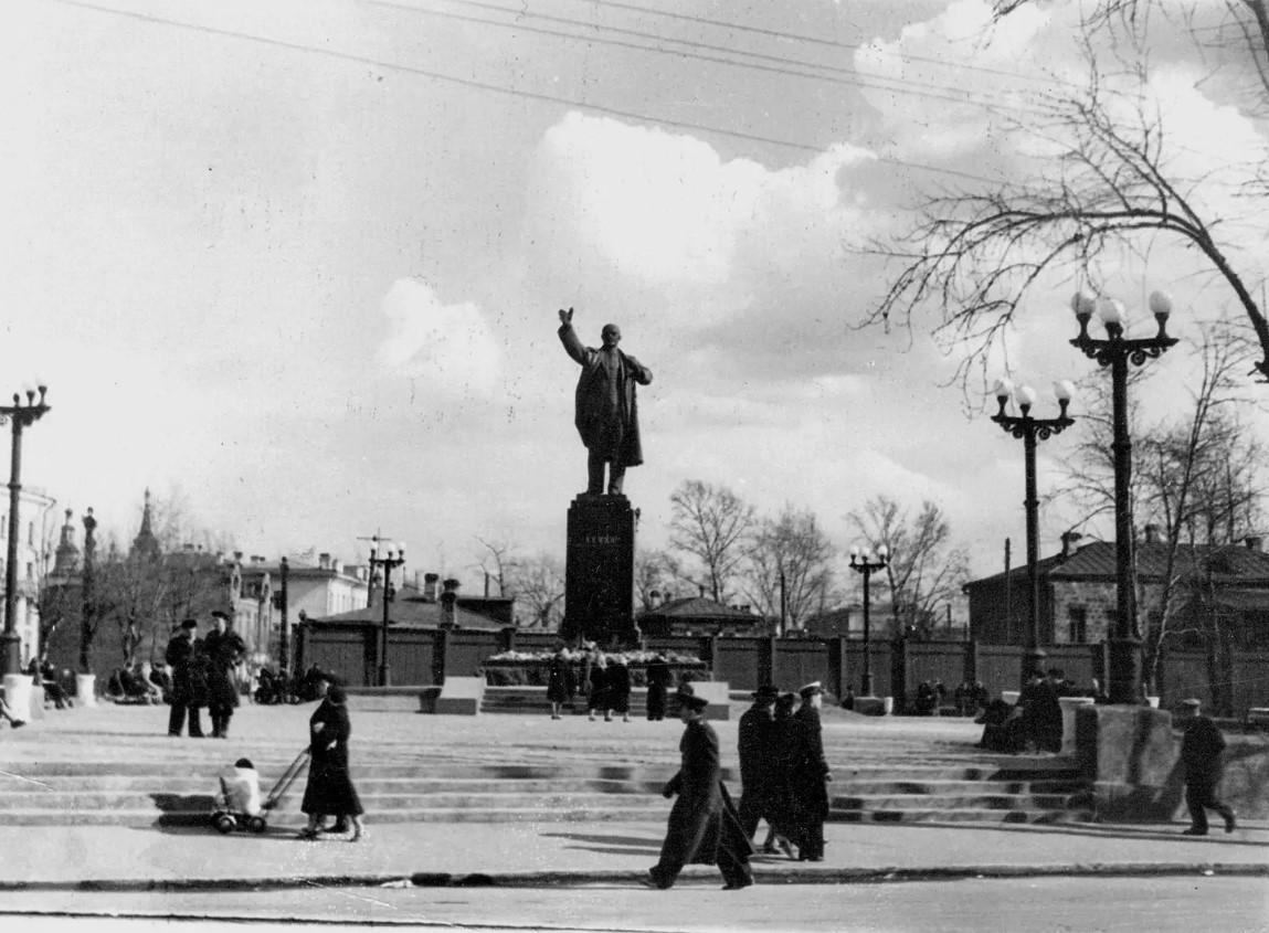 Площадь у памятника Ленину с тех пор сильно изменилась, но сам монумент остался на прежнем месте.