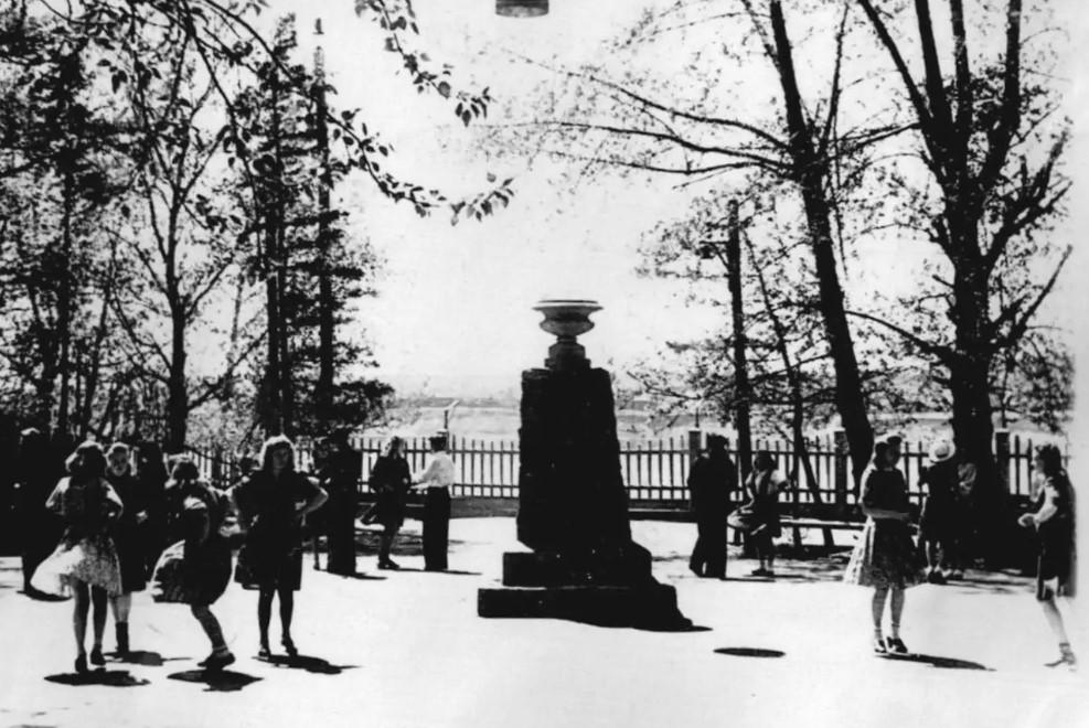 В послевоенные годы Парк имени Парижской коммуны располагался не на левом берегу, а в центре города — на бульваре Гагарина.