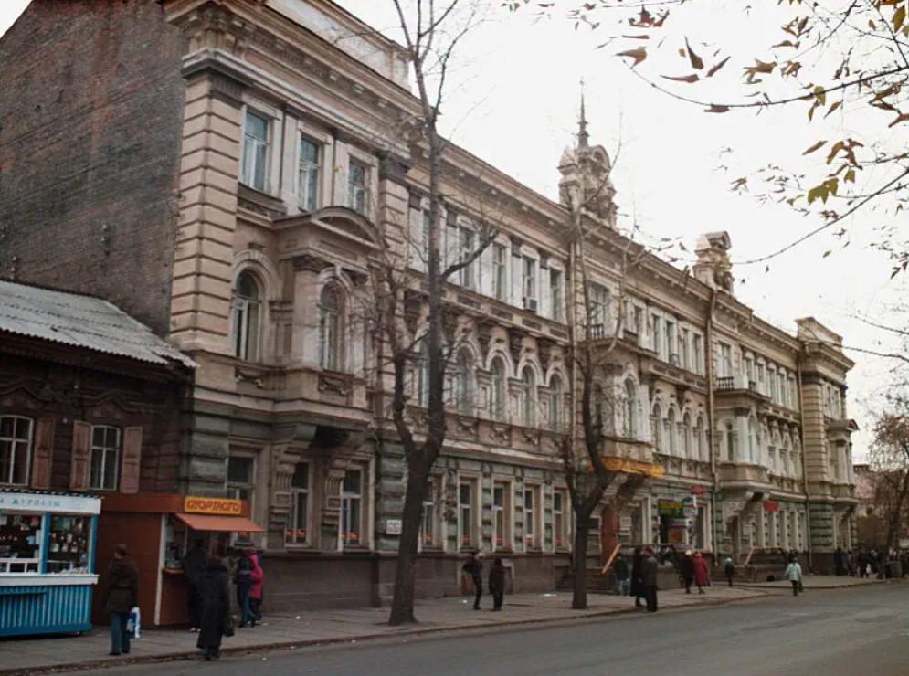 На фото — здание Русско-Азиатского банка до установки поддерживающих конструкций, необходимых для укрепления его фасада.