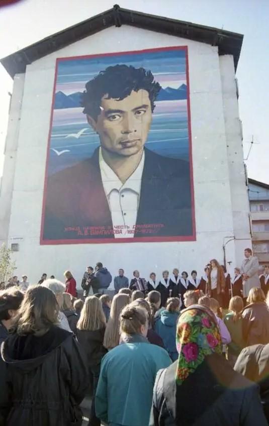 Панно с изображением драматурга Александра Вампилова торжественно открыли в 1997 году на доме №25 по улице его имени в микрорайоне Первомайский.