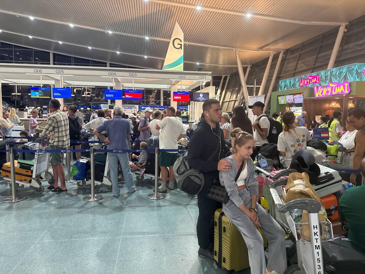По ее словам, в зоне ожидания скопилось много людей, некоторые были вынуждены расположиться прямо на полу. «В аэропорту довольно много людей ожидает регистрацию на наш рейс. Люди действительно лежали на полу, но когда объявили регистрацию, зашевелились потихонечку», — добавила она.