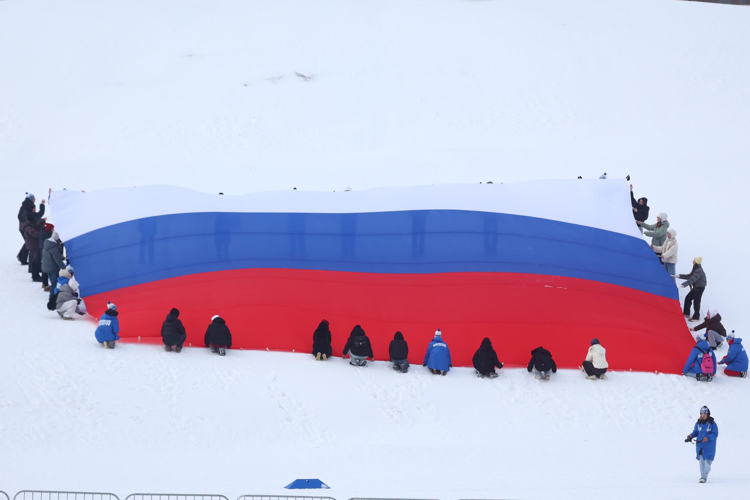 В сообщении канала говорится: «На фоне гор и снега триколор смотрелся особенно мощно и величественно. Это был момент, от которого захватывало дух. Со склона спускались участники с флагами, создавая яркую и по-настоящему трогательную картину, которая надолго останется в памяти».